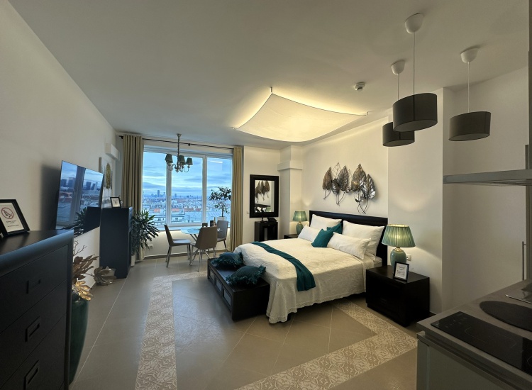 Bester Empfang vor grandioser Kulisse: Jedes Zimmer der Panorama Apartments Vienna in 1100 Wien verfügt über ein eigenes Telefon.